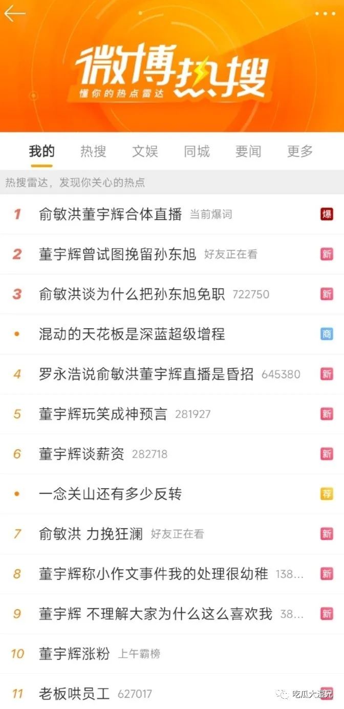 12月16日晚,东方甄选人事风波后,新东方创始人俞敏洪与董宇辉一同现身直播间,回应东方甄选近期的争议和热点话题。俞敏洪:董宇辉从没说过要离开东方甄选,我们之间沟通非常顺畅俞敏洪表示董宇辉这两天一直在西安休假,有传言他要离开,没有这样的事情。可能有人找,但他并没有接受,没有见面,电话也没接。他从来没有与任何人说过要离开东方甄选。他很热爱东方甄选,我们之间的沟通非常顺畅。董宇辉:小作文事件中我的处理很幼稚不得体,与孙东旭的沟通不是很好董宇辉表示,现在的局面绝非任何人的本意,很多网友在为我打抱不平,感谢大家的关注,无论如何,哪怕以后不工作了,离开东方甄选了,但也会感谢东方甄选,希望东方甄选好。“如果我的存在对东方甄选好,我会继续在;如果对东方甄选不好,我可能会离开,看俞老师的调整。”董宇辉表示,日前的小作文事件,自己处理的不是很好,小编用账号回复的事,本来事情很小, 我的处理很幼稚不得体,与孙老师的沟通中话不是很好。“整个世界都在狂风骤雨,没有经历过这类事情。相信终归会烟消云散。这两天电话被打爆了,收到了很多微信,拒绝了这些。”俞敏洪:免去孙东旭CEO职务与董宇辉没关系,不存在“二选一”俞敏洪说,这次事件是典型的管理漏洞的积累。今天之所以要“拿下东方小孙(孙东旭)”,和董宇辉没有关系,不存在“二选一”的情况,东方小孙依然会以新东方的创业者的身份为东方甄选做贡献。“拿下东方小孙”主要由于“小编”越过管理层在东方甄选官方账号上的发言,以及孙东旭在直播时不恰当的表达,包括提及董宇辉薪酬等侵犯个人隐私的行为。董宇辉在直播间中谈到,近期多方给了自己很多建议,确实也有很多人找过来,“但我本能的拒绝了。”其表示,自己更愿意坚持心里的坚守,“我自诩读书人,世界不缺我一个卖货的,不想借此机会成为带货主播,这不是我的本意。”董宇辉为何愿意留在东方甄选?俞敏洪:我们俩有三个共同心愿为什么董宇辉愿意跟着我?俞敏洪坦言,我们有三个心愿: 第一,一同愿意带领大家去看世界;第二,一同愿意去传播文化;第三,一同愿意去做农业;“只要平台做大了,就可以和个人利益和发展挂钩。宇辉相信我可以给他提供发展的机会,也相信我们能一起把内心的情怀变成现实”俞敏洪说道。董宇辉:拿到过很多个天价邀约,待遇不是自己第一追求董宇辉说,“如果我单纯是为了更高的经济报酬的话,可能去年6月就离开东方甄选了。我拿到过很多个天价的offer(邀约),但是我必须得思考工作的价值和意义在哪里。其实待遇上俞老师今天下午也已经跟我聊了,请大家放心,不会亏待,那个也不是我第一追求。”俞敏洪说,关于公司话语权一事,未来董宇辉一定会有话语权,同时他也希望被罢免的孙东旭也可以建言献策,“未来董宇辉想要做的事情,只要我觉得合情合理,一定会调动资源帮他实现”。董宇辉:今天下午和俞老师沟通过薪酬问题,有非常大提升董宇辉称,关于待遇问题,因为保密协议,不能提太多。“今天下午俞老师已经和我沟通了,真的非常多了。”他后续补充,薪酬有非常大的提升,且俞敏洪承诺如果他离开可以投资。董宇辉说,尊重东方甄选的体系,过去两天接到的电话非常多,如果更多考虑经济回报,去年6月他已拿到了“天价offer”。俞敏洪补充说,待遇包括股权。俞敏洪说,原来东方甄选的平台对宇辉“不公平”,他希望未来和董宇辉、东方小孙(孙东旭)打造更好的平台,希望给董宇辉和其他主播更多的发展空间。俞敏洪:东方甄选将很快启动一轮大调整,涉及董宇辉等主播薪资俞敏洪说,此前自己非常尊重管理层的意见,如今自己掌管公司,将很快启动一轮大调整,包括所有主播的待遇,“这次调整不仅针对董宇辉一个人,而是面向公司所有主播”。他希望通过此次调整,为公司奠定良好的发展方向和基础,“这里面还有很多孙东旭可以做的事情”。俞敏洪:希望东方甄选能以“小作文”风波为契机,在未来发展得更好谈及东方甄选的未来,俞敏洪说希望东方甄选在宇辉和团队的努力以及自己的带领下,能以这件事情为契机,在未来发展的更好。俞敏洪董宇辉合体直播持续霸占热搜,成为16日晚当之无愧的顶流。在直播期间,罗永浩发文认为这场直播是个昏招,“让小董若无其事地回来播就行了,绝口不再提是最好最合理的安排。” 也有人认为,这场直播标志着一场蓄谋已久的闹剧尘埃落定。这场直播将如何改变董宇辉、孙东旭、俞敏洪和东方甄选?我们拭目以待。