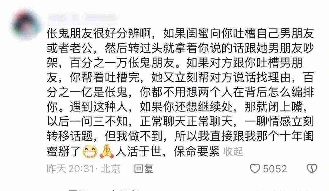 千万不要掺合闺蜜的情感纠纷,这个姑娘因此丢了一只眼,对方却和好了…… 吃瓜网 2025-10-12 05:27:32 56 0 不要随便掺合别人的因果。尤其是情侣打架躲的要多远有多远!!!!别傻乎乎帮忙。。。。。。看这个姑娘真的惨的要命,热心去帮忙结果对方伤害完自己,人家转头和好了-用户肉丸子:千万不要说朋友老公的不好,你要知道一个被窝里睡不出两种人,发现他们其中一个有问题的时候就是大家的三观已经产生了分歧,说好听话就行了,别较真,没必要alayayo:幸亏我没有闺蜜流连草草:从前有个闺蜜她对我真的很好,直到一天晚上她打电话向我吐槽她老公,我跟着吐槽了几句结果发现她开着免提并且她老公就在旁边。再见立刻远离,真是心理阴影,直到现在我还在反思自己哪里做得不好,才导致和这样的人成为闺密 吃瓜吃瓜网吃瓜网站吃瓜群吃瓜群众 << 罗永浩称企业出来公关不要爹头爹脑,就差点东方甄选ceo小孙的名了 网传江苏一狗场数只狗被割舌头 >> 您可以还会对下面的文章感兴趣: 看完削皮后的草莓,我对草莓的欲望减半了…已经失去了灵魂 笑死了!欢迎收看大型连续剧《大义灭亲之车轮战》,祖宗在下面的人脉都用尽了 开公司请注意,有重大变化:这个数字不能随便填了! 象棋选手用肛珠作弊?这玩意在体内,还能坐得住 女子实名举报国企董事长强奸未遂 10部2023年爆火的高分电影,趁周末看看! 婚礼当天,新娘差点儿被毁容!这种东西要慎用 聊天记录一定要删干净,这就是新时代的“粉身碎骨浑不怕,要留清白在人间”吧 新郎婚礼播放小电影,啊啊啊不要什么都往相册里存啊! 男老师被害,起因竟是一本暧昧日记...... 相关文章 看完削皮后的草莓,我对草莓的欲望减半了…已经失去了灵魂 笑死了!欢迎收看大型连续剧《大义灭亲之车轮战》,祖宗在下面的人脉都用尽了 开公司请注意,有重大变化:这个数字不能随便填了! 象棋选手用肛珠作弊?这玩意在体内,还能坐得住 女子实名举报国企董事长强奸未遂 10部2023年爆火的高分电影,趁周末看看! 婚礼当天,新娘差点儿被毁容!这种东西要慎用 聊天记录一定要删干净,这就是新时代的“粉身碎骨浑不怕,要留清白在人间”吧 最新评论 ◎欢迎参与讨论,请在这里发表您的看法、交流您的观点。 内容 昵称 邮箱 网址 取消回复