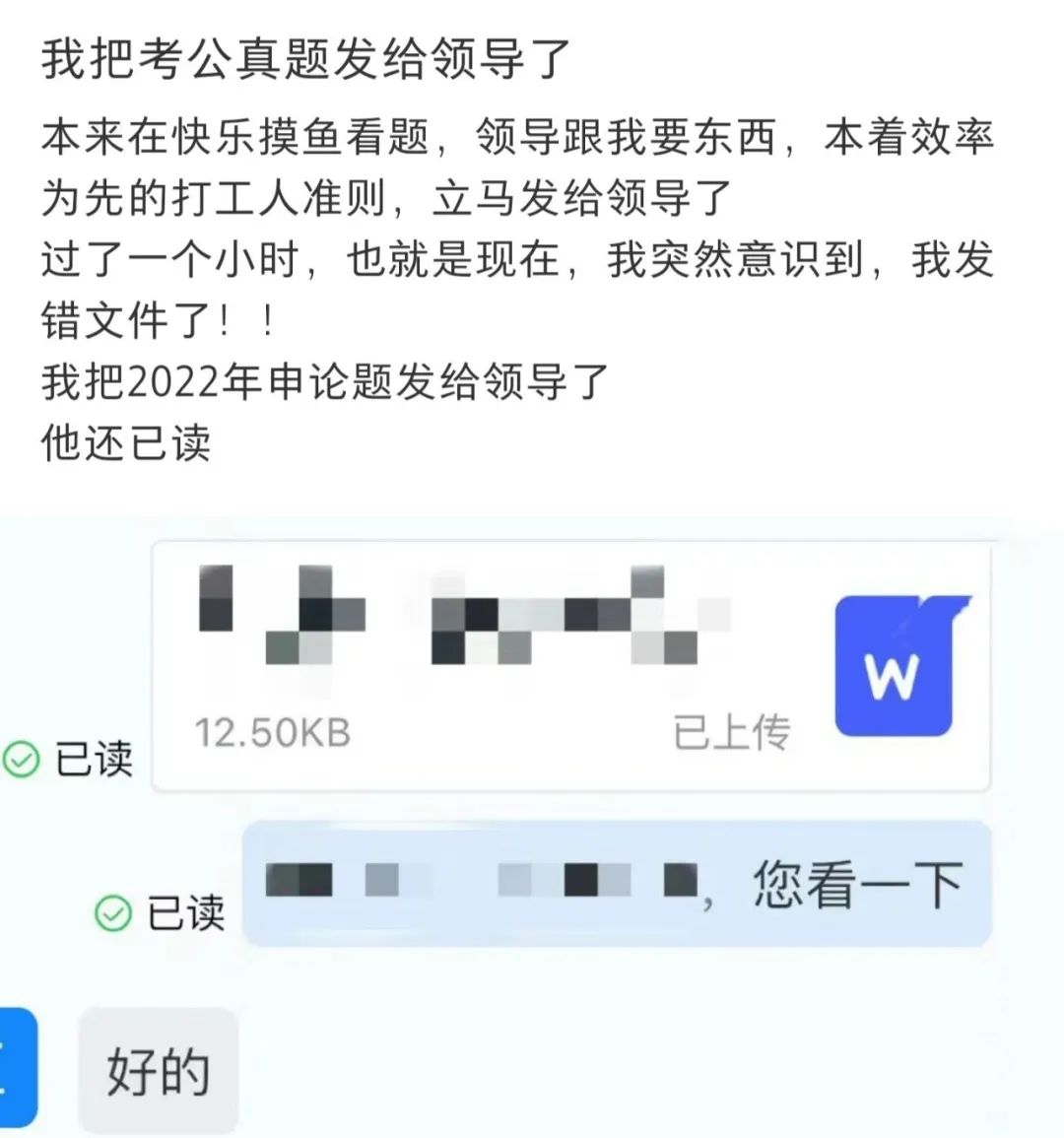 把考公真题误发给领导。
