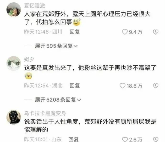 因为有个艺人找了个荒郊野岭,脱了裤子拉屎,结果被代拍给拍到了?