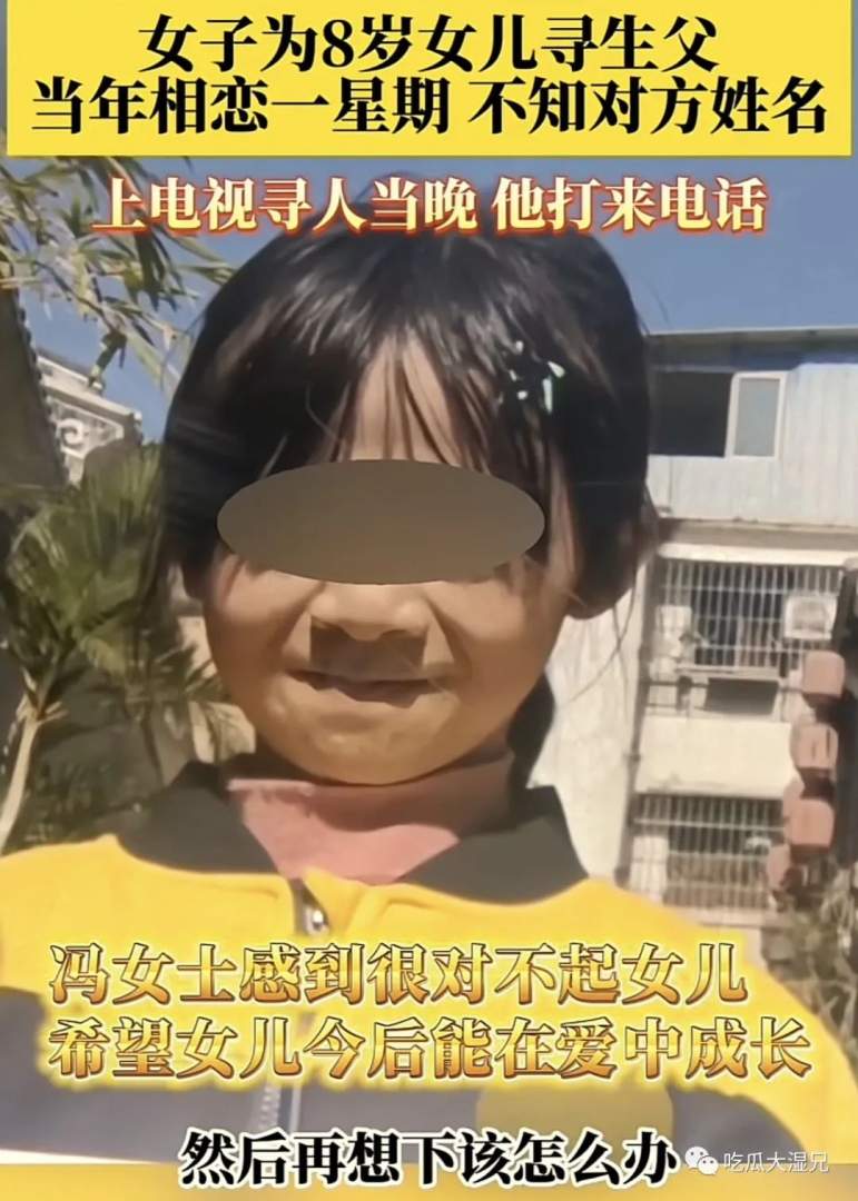 重庆36岁的冯女士,为8岁的女儿寻找生父,却忘了“他”叫什么名字,因为当年只恋爱了一周!