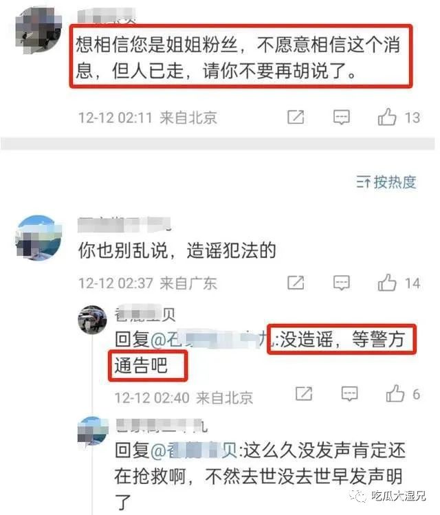 当时就有ID北京的网友在评论区称,称虽然难以接受 ,但人已走,在等警方通报。