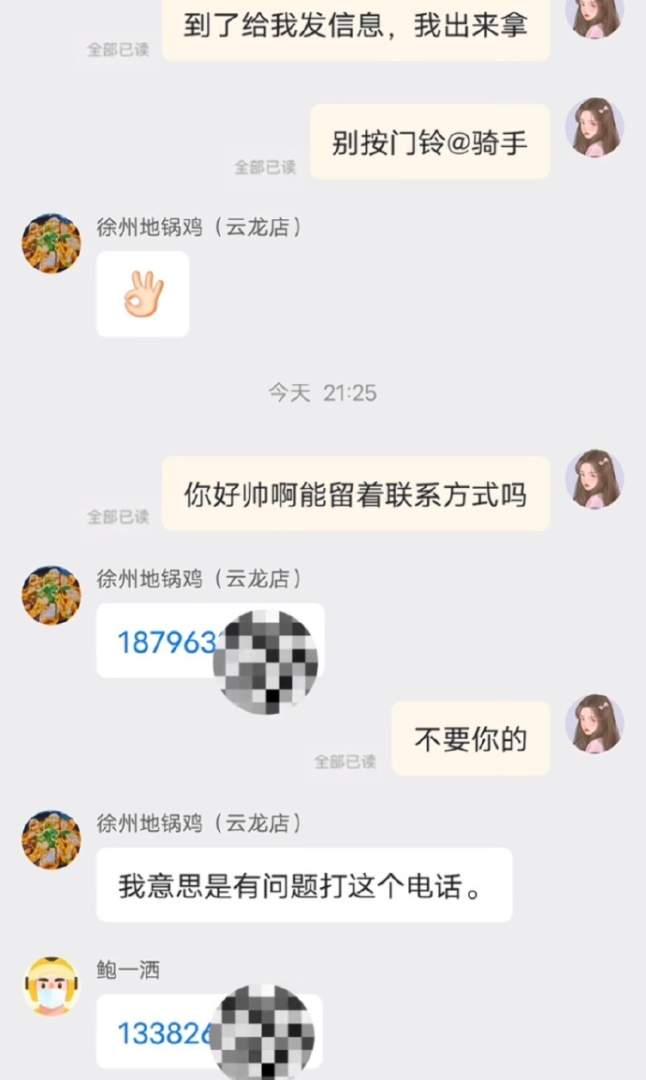 当你要外卖小哥的电话。