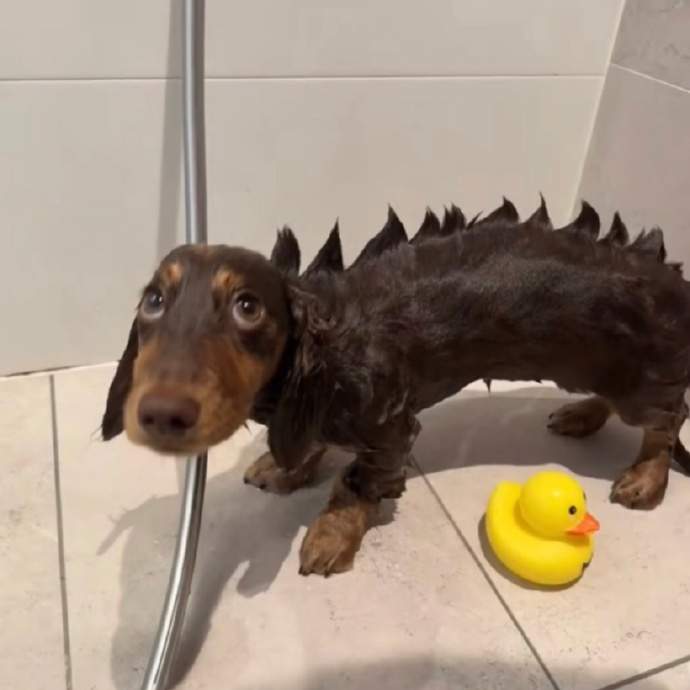 洗完澡直接变恐龙。