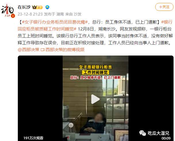 女子银行办业务柜员闭目葛优瘫 吃瓜网 2025-09-20 03:42:27 63 0 【#女子银行办业务柜员闭目葛优瘫#,总行:员工身体不适,已上门道歉】#银行回应柜员被质疑工作时间睡觉#12月8日,湖南长沙。网友发视频称,一银行柜台员工上班时间睡觉。该银行总行工作人员表示,该同事当时身体不适,没有做好解释工作导致存在误会,目前正在积极对接处理,工作人员已经向当事人上门道歉。● 表弟睡了肉联厂老板娘,屁股上被盖两个检疫章● 3人强奸未成年人被执行死刑 吃瓜吃瓜网吃瓜网站吃瓜群吃瓜群众 << 男演员涉嫌偷拍女演员 多人发声 免费电影:2023必看新片,揭秘冤案背后的惊天阴谋,你敢看吗? >> 您可以还会对下面的文章感兴趣: 看完削皮后的草莓,我对草莓的欲望减半了…已经失去了灵魂 笑死了!欢迎收看大型连续剧《大义灭亲之车轮战》,祖宗在下面的人脉都用尽了 开公司请注意,有重大变化:这个数字不能随便填了! 象棋选手用肛珠作弊?这玩意在体内,还能坐得住 女子实名举报国企董事长强奸未遂 10部2023年爆火的高分电影,趁周末看看! 婚礼当天,新娘差点儿被毁容!这种东西要慎用 聊天记录一定要删干净,这就是新时代的“粉身碎骨浑不怕,要留清白在人间”吧 新郎婚礼播放小电影,啊啊啊不要什么都往相册里存啊! 男老师被害,起因竟是一本暧昧日记...... 相关文章 看完削皮后的草莓,我对草莓的欲望减半了…已经失去了灵魂 笑死了!欢迎收看大型连续剧《大义灭亲之车轮战》,祖宗在下面的人脉都用尽了 开公司请注意,有重大变化:这个数字不能随便填了! 象棋选手用肛珠作弊?这玩意在体内,还能坐得住 女子实名举报国企董事长强奸未遂 10部2023年爆火的高分电影,趁周末看看! 婚礼当天,新娘差点儿被毁容!这种东西要慎用 聊天记录一定要删干净,这就是新时代的“粉身碎骨浑不怕,要留清白在人间”吧 最新评论 ◎欢迎参与讨论,请在这里发表您的看法、交流您的观点。 内容 昵称 邮箱 网址 取消回复
