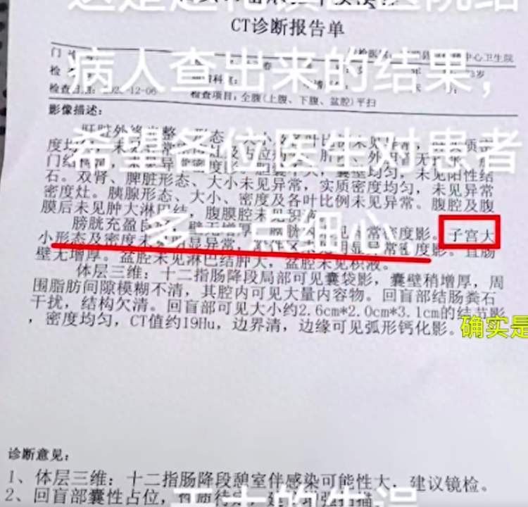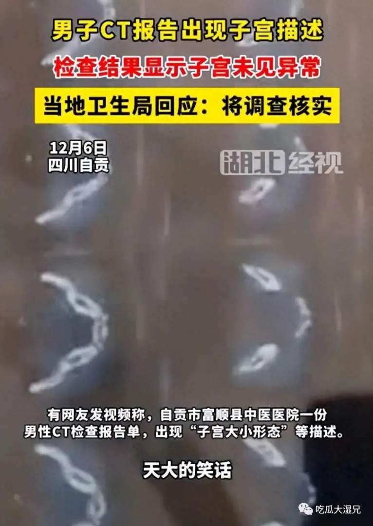 男子CT报告现子宫?院方回应