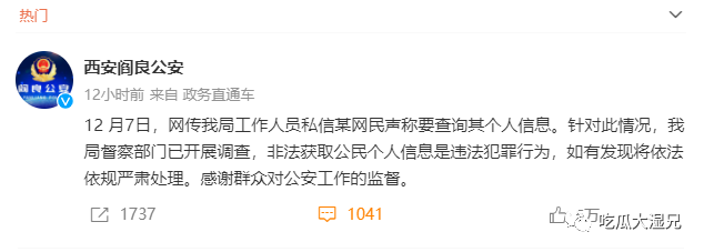 12月7日晚,一网民发文称,一名疑似西安阎良公安系统内的警务人员通过微博私信威胁自己,并声称可以查到自己的个人信息。