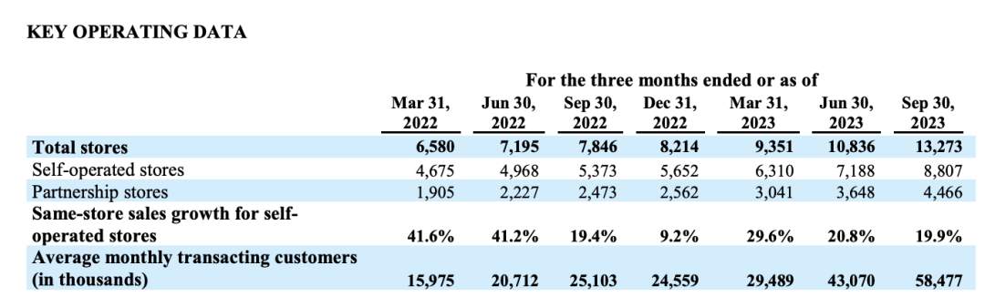 2023年Q3瑞幸咖啡主要经营数据 图片来源:瑞幸财报