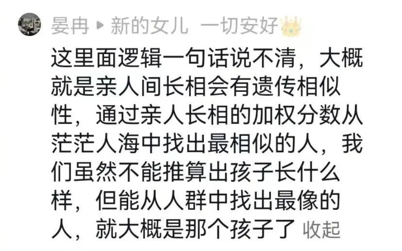 持星一:感觉我们从小见到孩子都会说,这孩子跟他爸妈或者跟哪个亲戚真像,但是从来没有想过运用AI的算法把它运用到寻亲上,感觉这个思路真的很好?