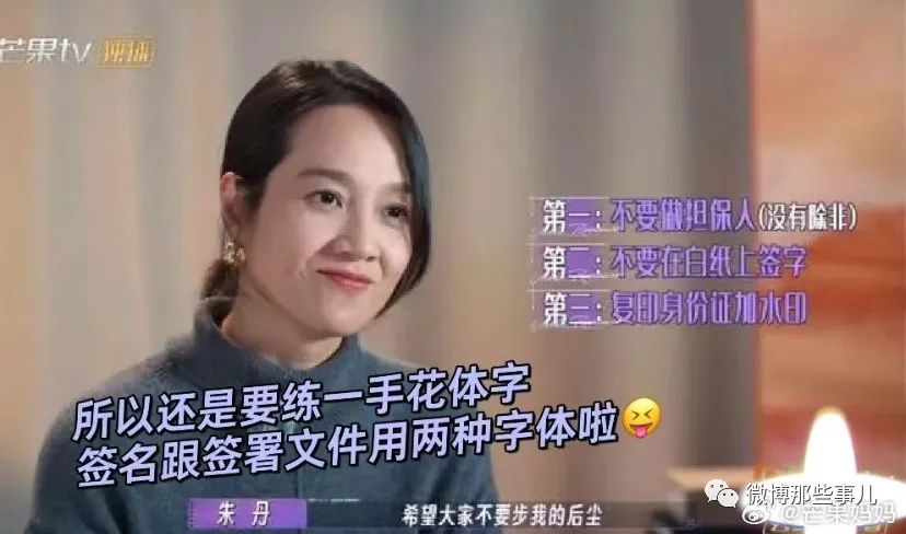 @朱丹 讲述自己曾被最好的朋友骗为担保人,不得不用自己全部积蓄替朋友还清所有债务的往事:“直到今天她也没有对我说过一句对不起。”朱丹也在节目中提醒大家,一定不要在白纸上随便签自己的名字。