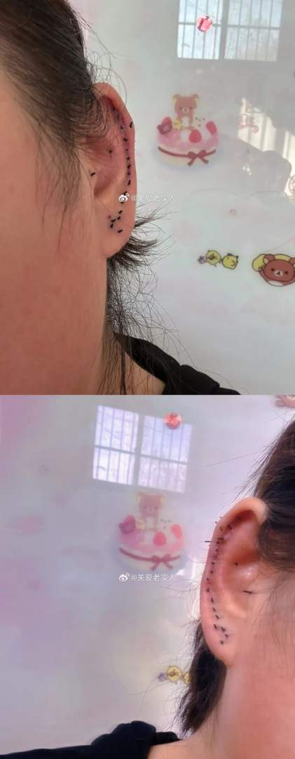 密密麻麻的耳洞。