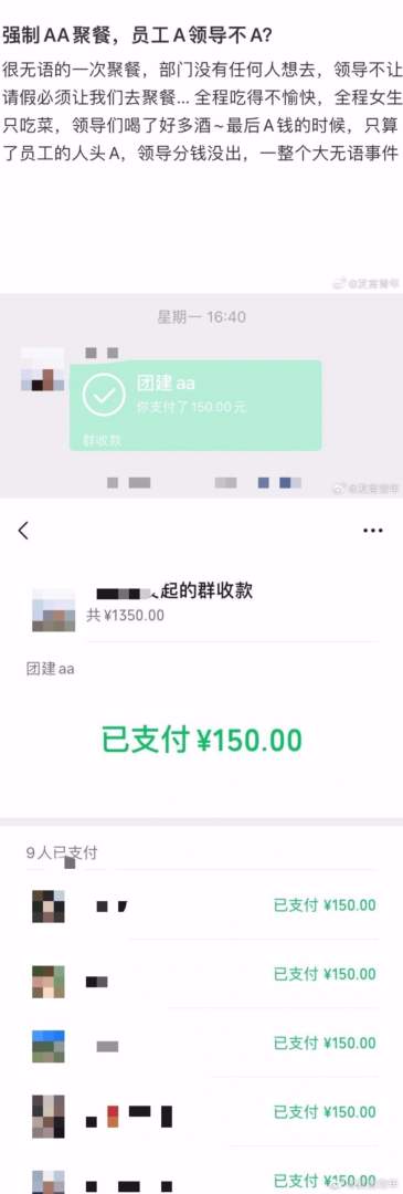 AA团建请领导吃饭。