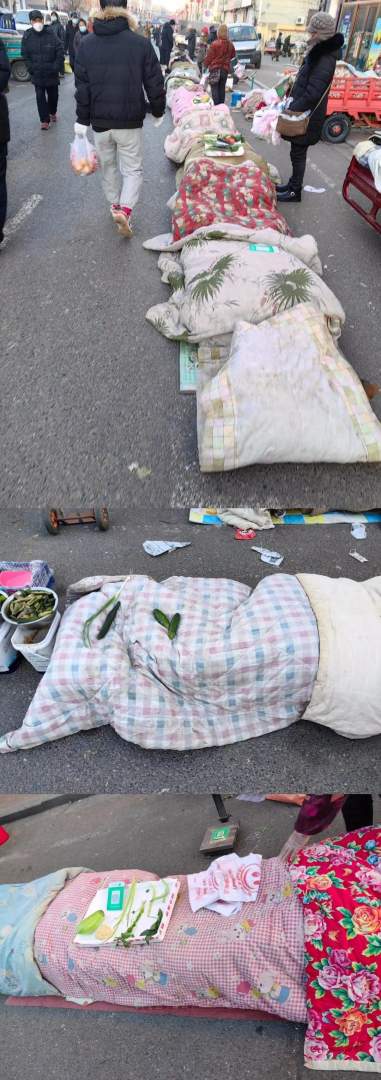 原来冬天的东北菜摊是这样卖菜的。
