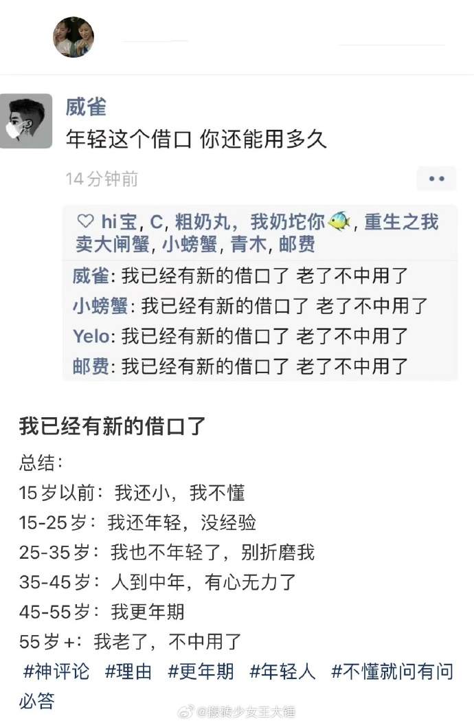 每个年龄段都有借口。