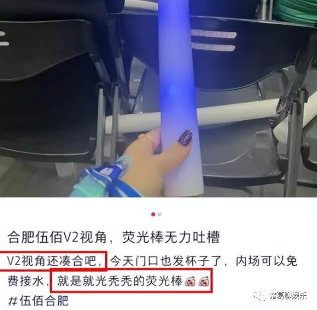 除了V5V6专区,很多V2区的歌迷也感慨位置差强人意,荧光棒光秃秃,连个字都舍不得印。
