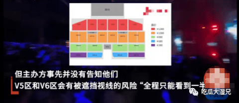 11月25日,一名观众发文吐槽表示自己购买的1280元的VIP区被分在V6区落座,但主办方并没有事先告知,V5和V6区会被遮挡视线。