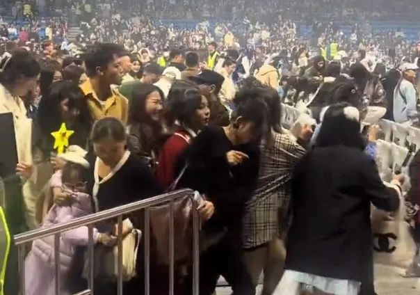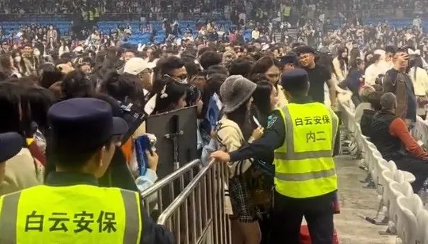 演唱会当天,现场更是一片混乱,后排观众冲向前排,保安连拦都拦不住 。