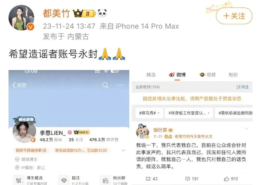 骂都某竹的闺蜜李恩和那个前几天反水支持吴亦凡的写手都被禁言了