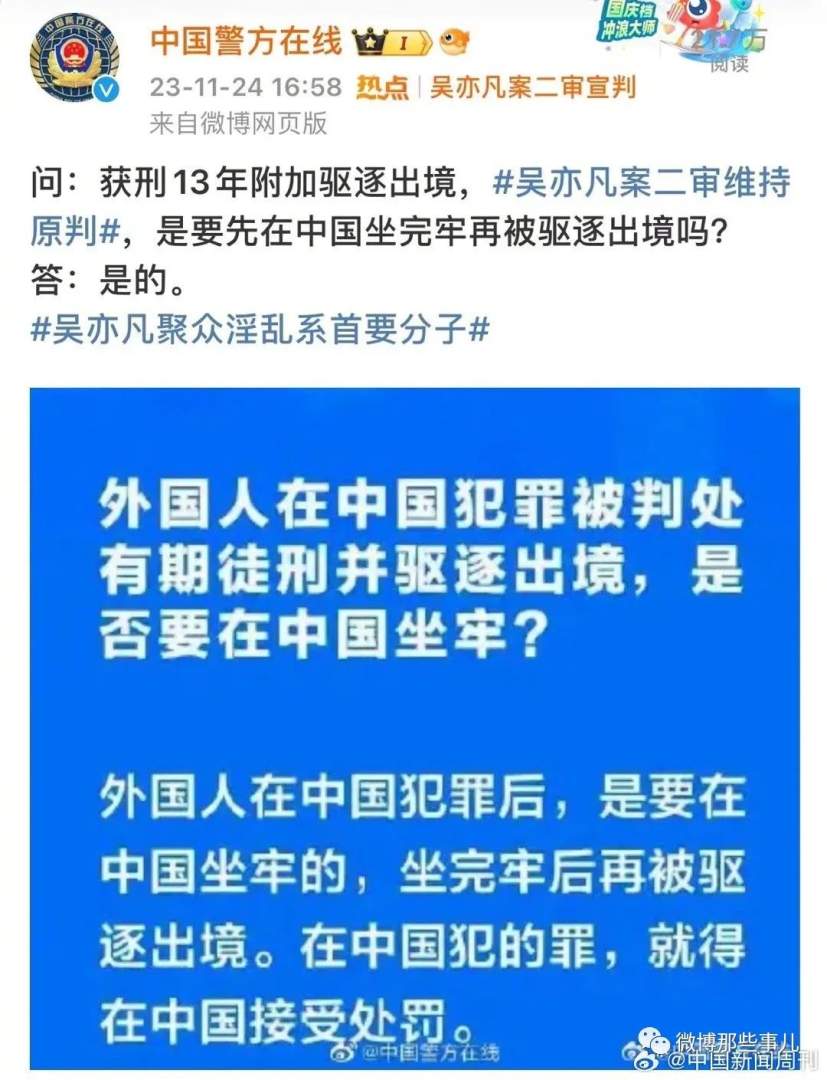 公安部治安管理局表示:吴亦凡要先在中国坐完牢再被驱逐出境