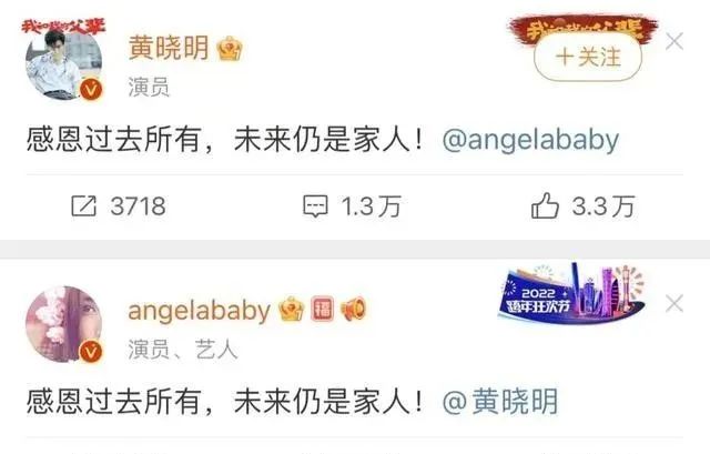2022年1月28日,黄晓明、Angelababy发文官宣离婚。双方在社交平台写下:“感恩过去所有,未来仍是家人!”