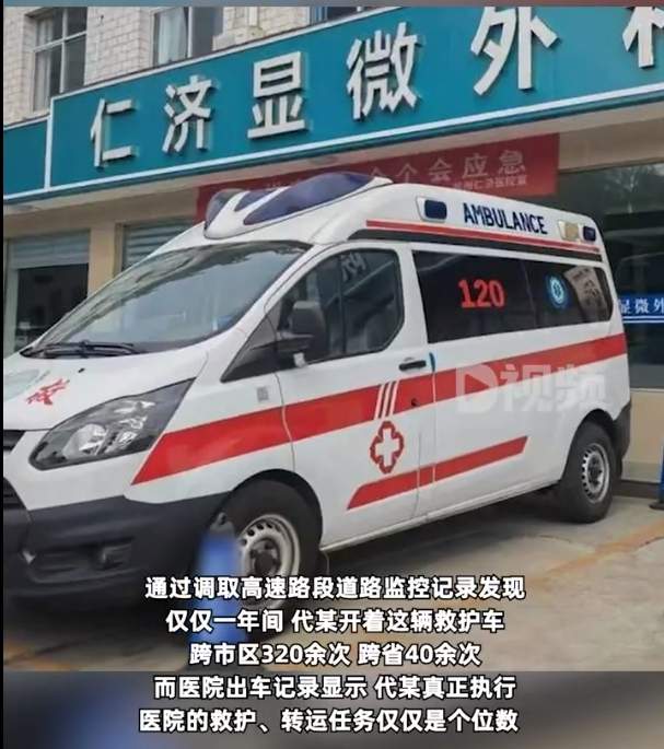 通过调取监控发现,仅一年间,代某开着这辆救护车跨市区320余次,跨省40余次。而医院出车记录显示,代某真正执行医院的救护、转运任务仅仅是个位数。
