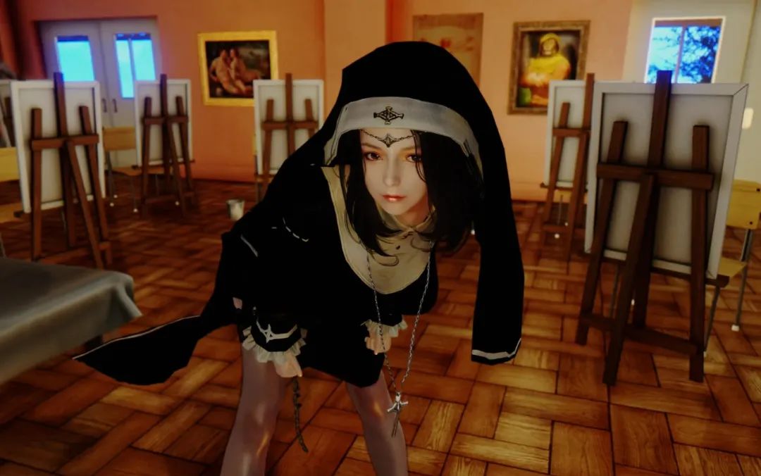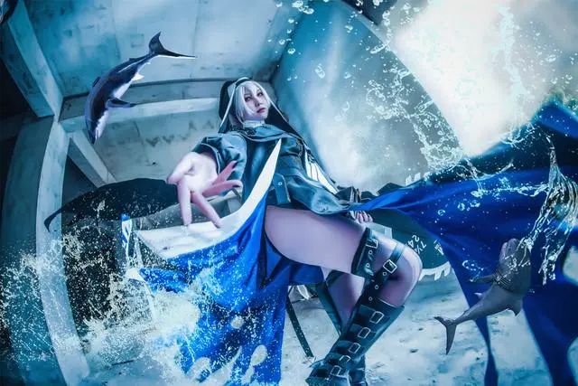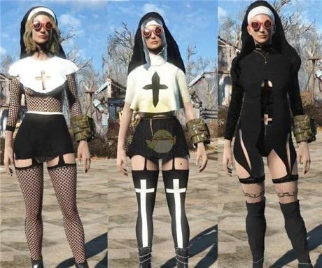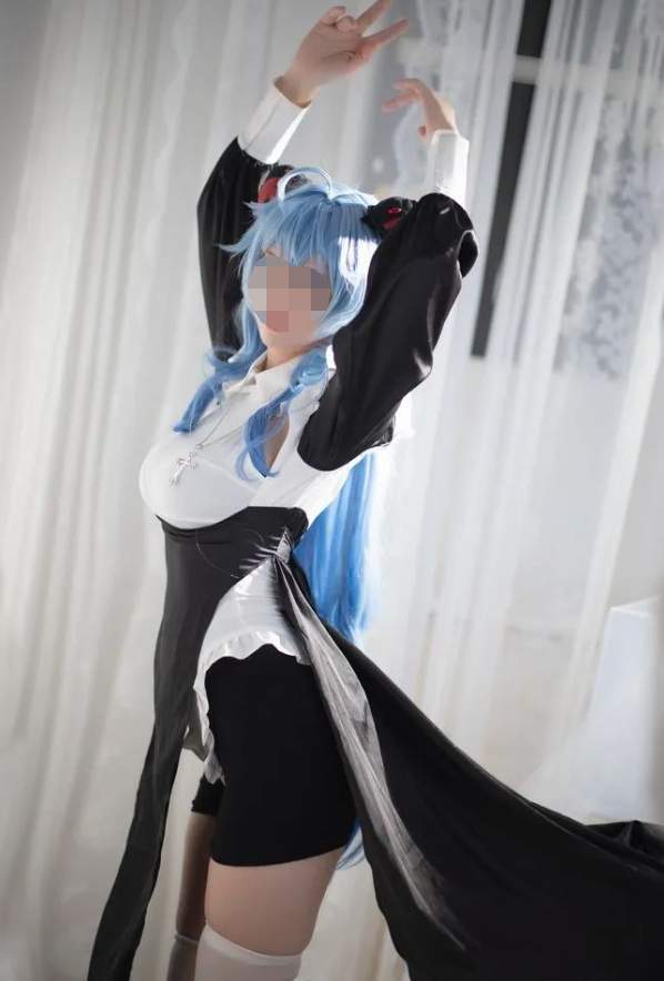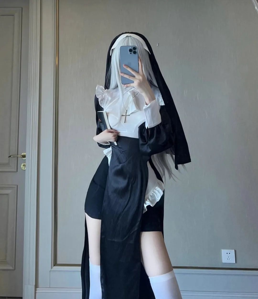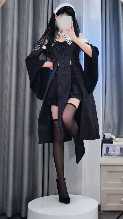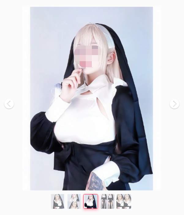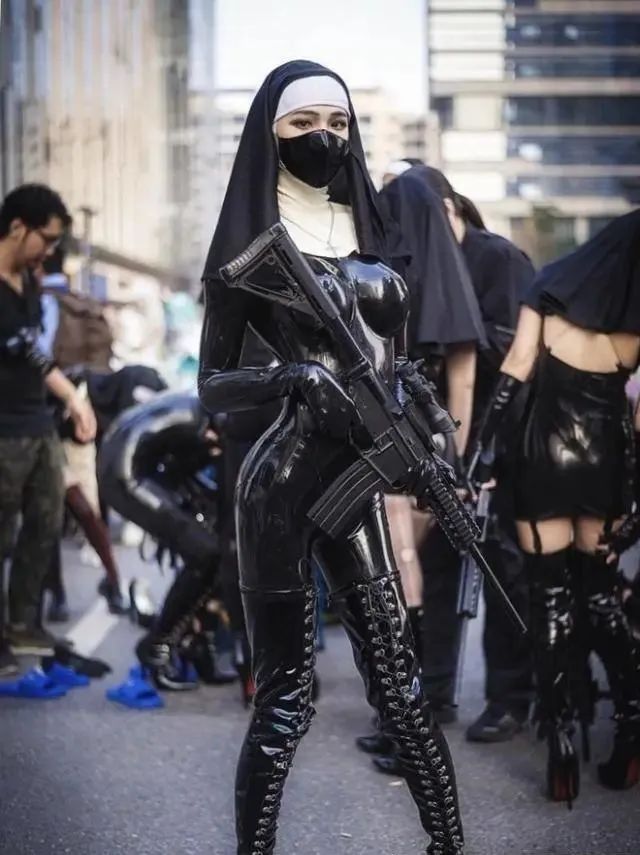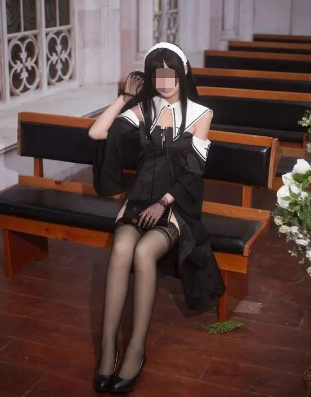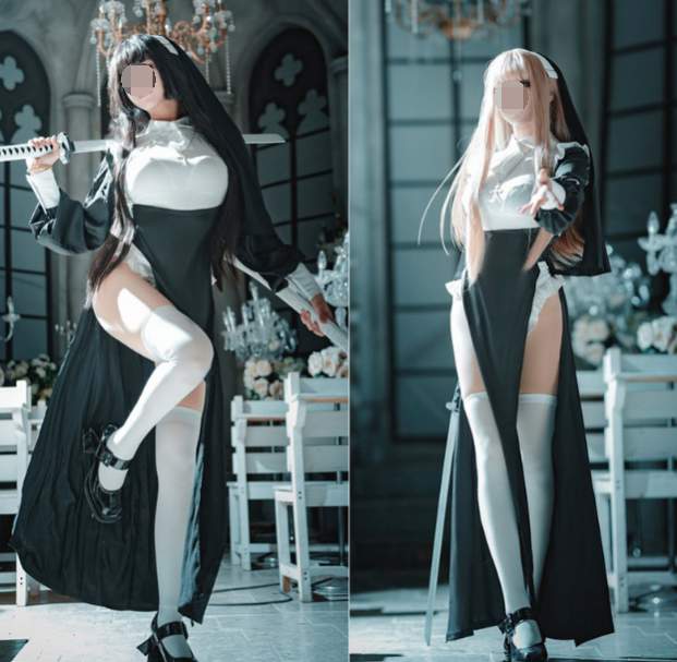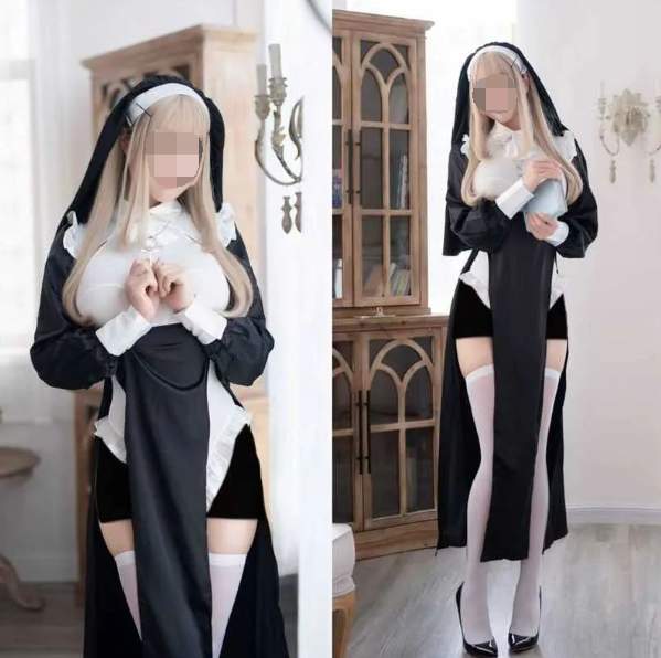 她们会把修女制服魔改到平台能接受的极限,开叉开到胳肢窝,用束腰勒出比例失调的胸围,