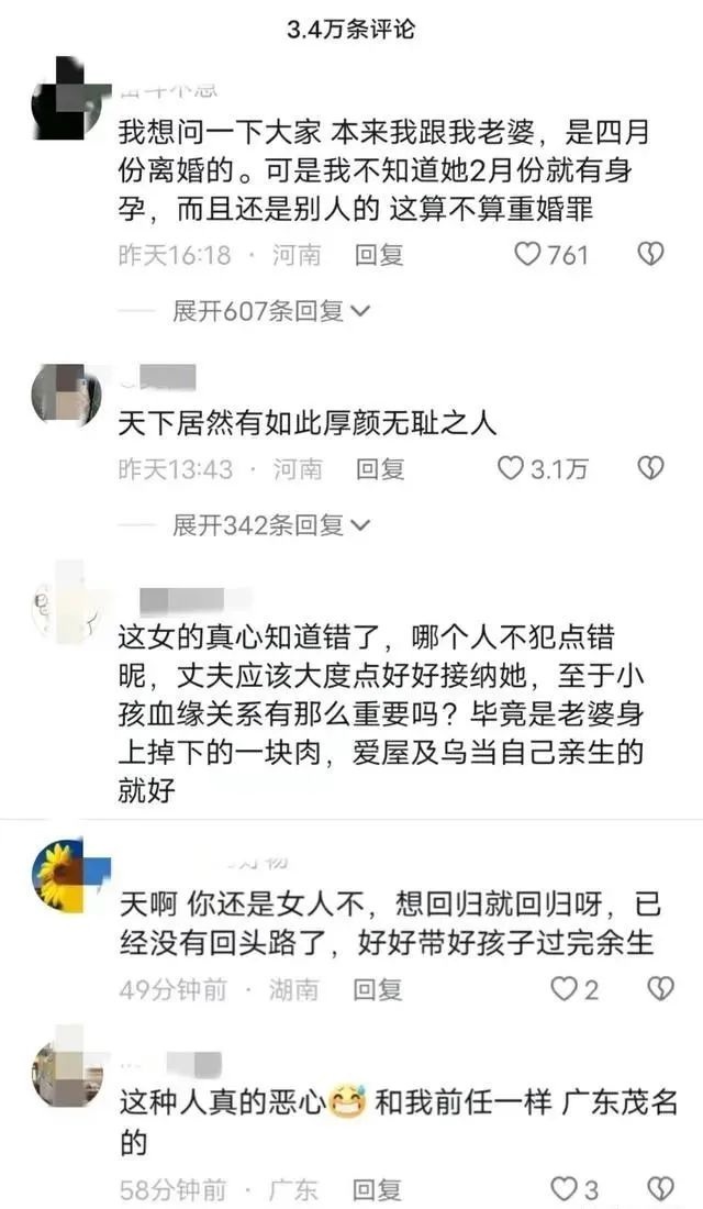 事情曝光后,引发舆论哗然。有人说女子并非想回归家庭,而是想找人养活自己和孩子。