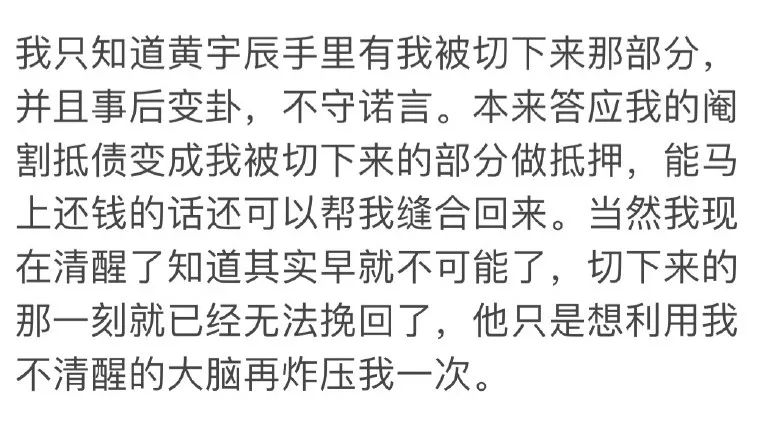 女主及其朋友在男主切了之后,又改口了,说切下来的小丁丁只是男主给他们的抵押,男主还是得还钱。如果男主还钱,他们就把小丁丁还给男主,让男主把小丁丁装上去。