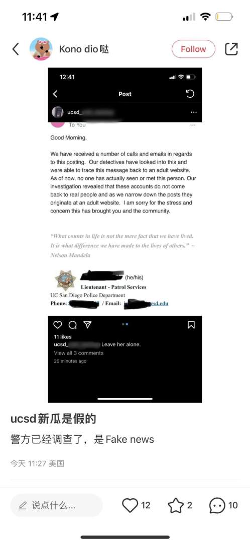 与此同时,女主把聊天记录挂在UCSD墙上,说男主是老赖。
