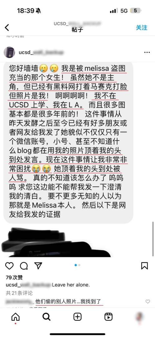 聊天群里戏份不多的Melissa,她的头像是盗用的是在LA上学的一个女生的照片,Melissa用别人的照片到处发言被人骂,给照片本人带来很大的困扰。