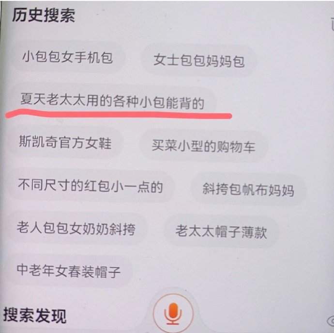 一位75岁老太太的购物搜索记录。