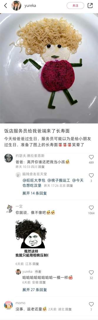 饭店送来的儿童长寿面。
