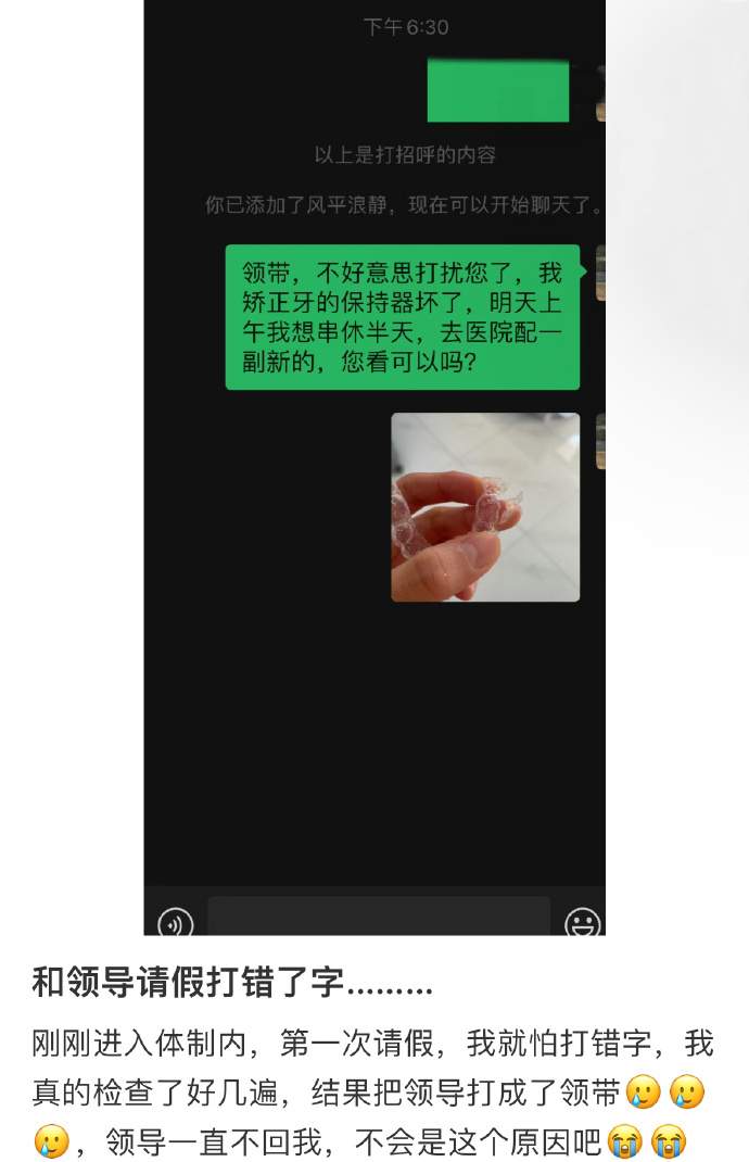 和领导请假打错了字。