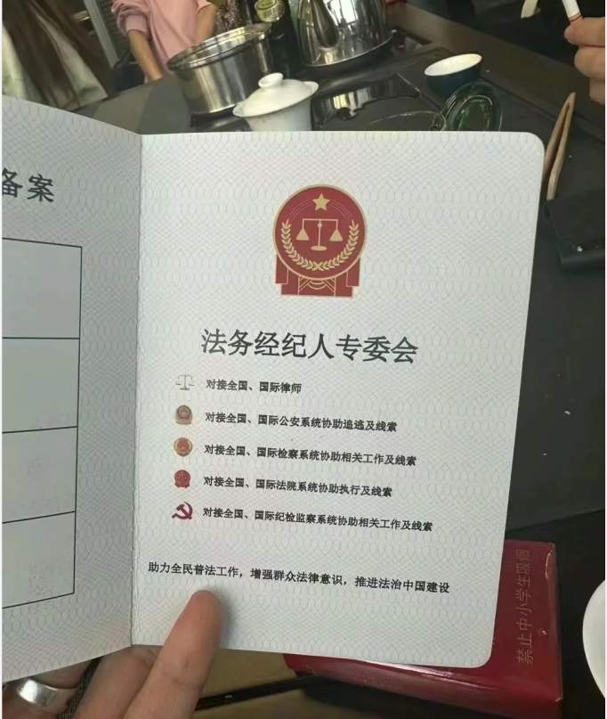 这个所谓的法务经纪人,某协会自创网站,还可以开函件代理案件。司法部设置法律职业资格证门槛考试像个笑话,人家三个月就可以成为高级法务精英。