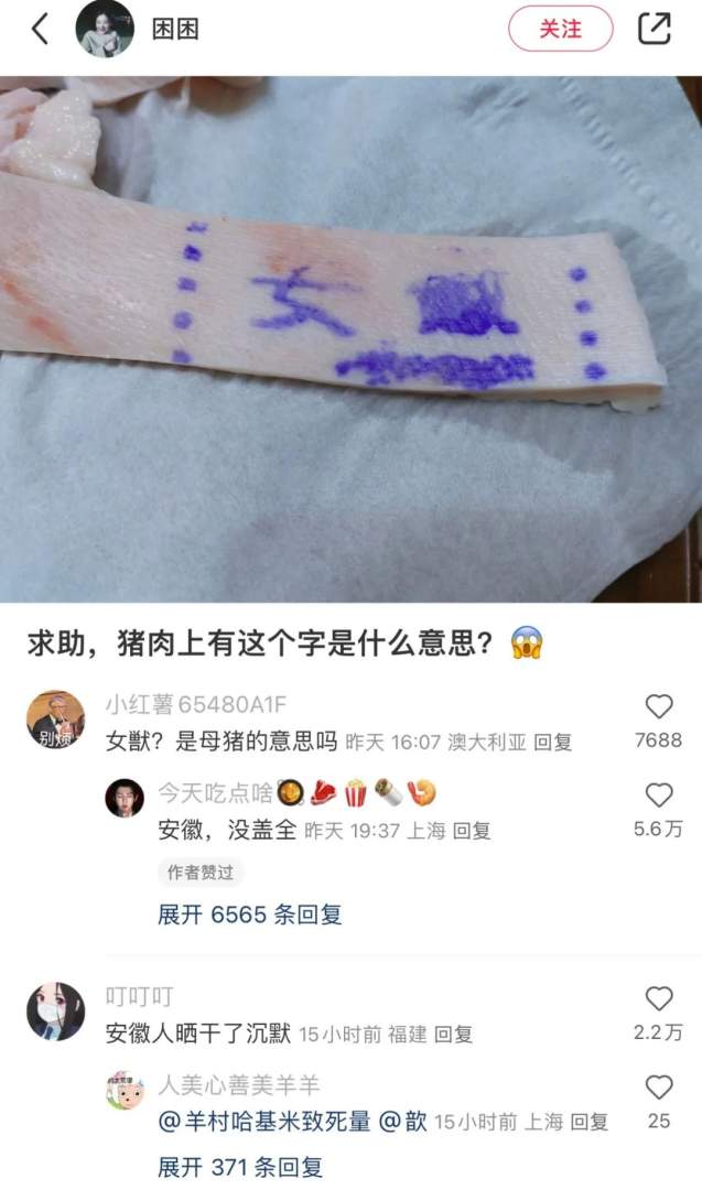 猪肉上的字是什么?