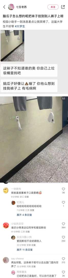 为什么把袜子挂到别人裤子上晾。