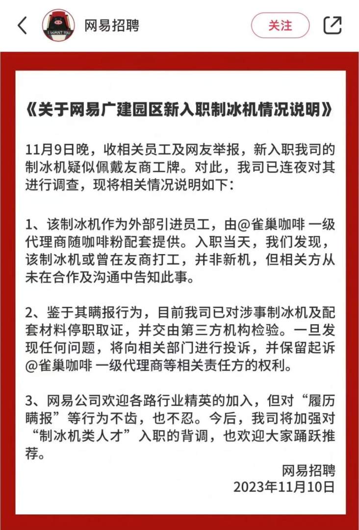 11月10日,网易招聘官方对此专门发布了一份情况说明: