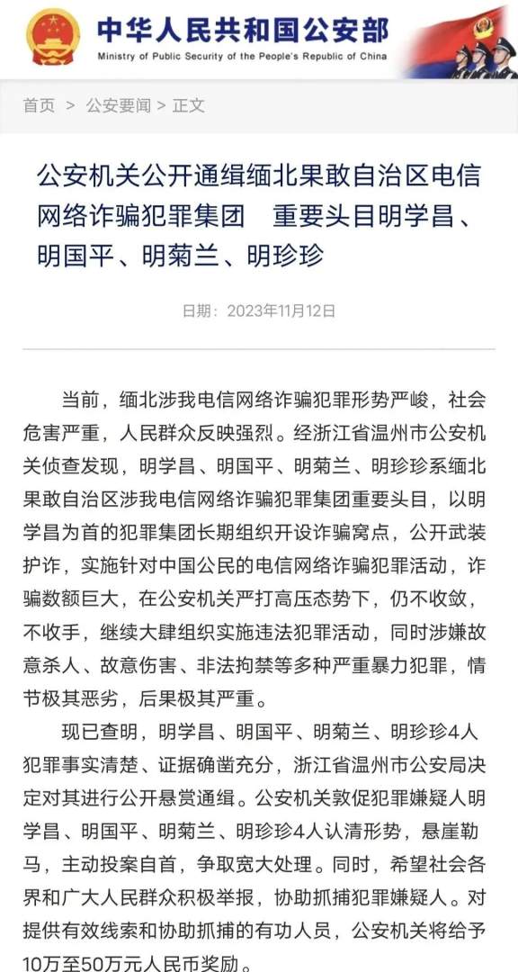 果敢明家主要成员被通缉了,网传的10.20屠杀国人事件的罪魁祸首就是这个明家。
