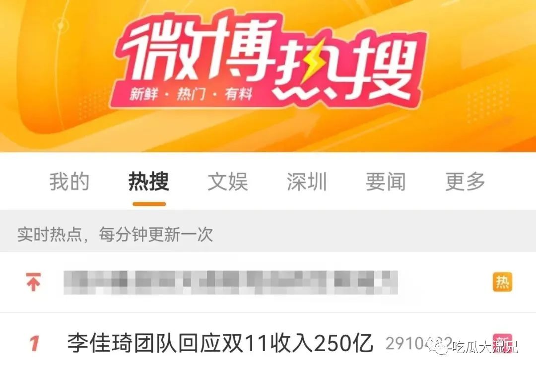 11月13日,有媒体报道称,据李佳琦团队统计数据:根据李佳琦直播间的销量及售价测算,今年双十一期间,李佳琦总收入保守估计超250亿元。其后话题迅速登上热搜。