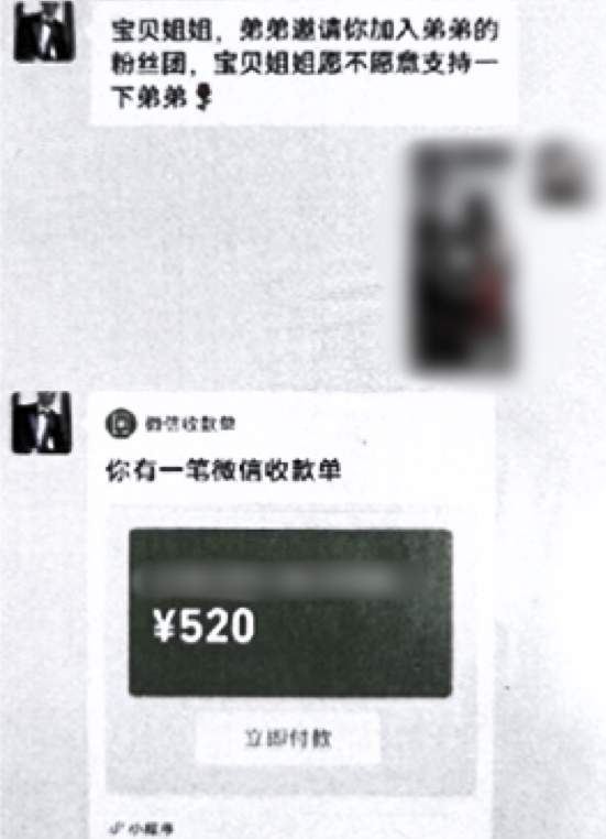紧接着,她们会去“靳东”视频留言区添加一些网友,这些网友大多都是女性,年龄在40至65岁间。由于不熟悉网络诈骗套路,这些阿姨基本没有防范之心,稀里糊涂就会被诈骗分子拉入群聊,加入粉丝团,支付100到200元不等的入团费用。
