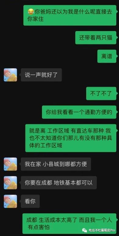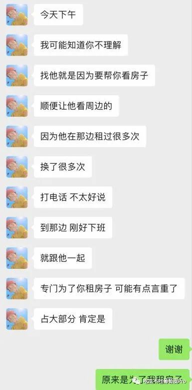 这件事发生之后,赵某工作忙没时间哄我,我把自己哄好以后,跟他说让他帮我去看房子然后直接签合同,然后我直接搬过去。他也欣然接受了这个提议,因为当时中介找的房子都在青羊区比较老旧,我就没有很看上,我想让他帮忙再去看一下其他房子。他说要回去打卡之后就消失了。说是去找朋友吃饭了,现在很难不让人怀疑去找“小三 ”吃饭了,和什么朋友吃饭不回女朋友消息呢,好奇。