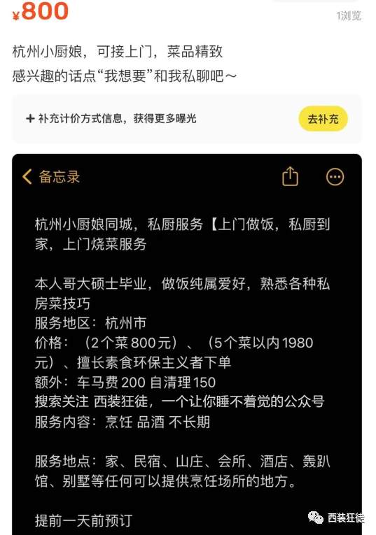 于是悄悄在网上搜索起了上门做饭的帖子,