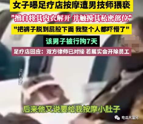 可没成想,按摩的时候,一个男技师以她身体不舒服和宫寒需要调理为名,竟然未经她同意就把她的内衣解开,还对她的私密部位动起了歪脑筋。