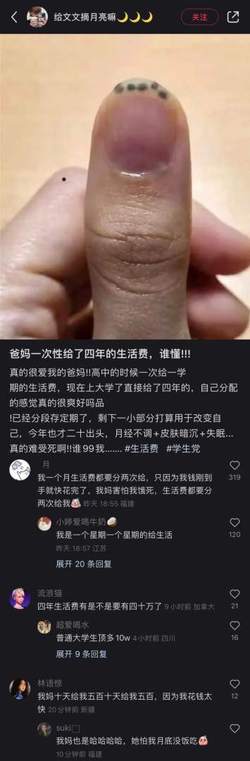 爸妈一次性给了四年生活费。
