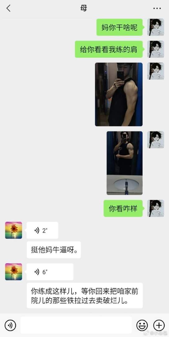 当我把健身照片发给我妈。