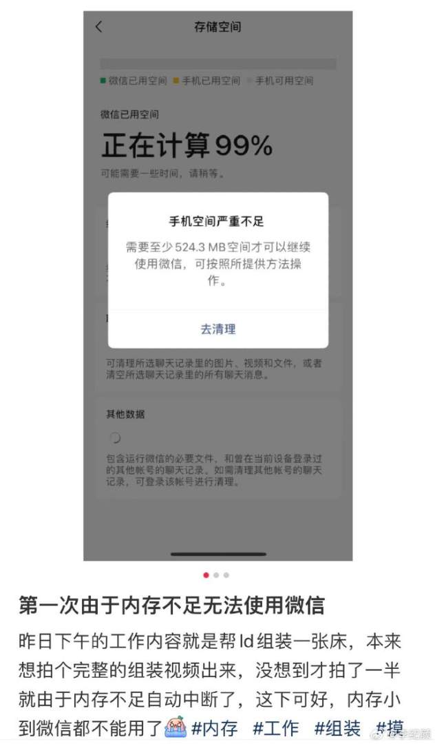 由于内存不足无法使用微信。
