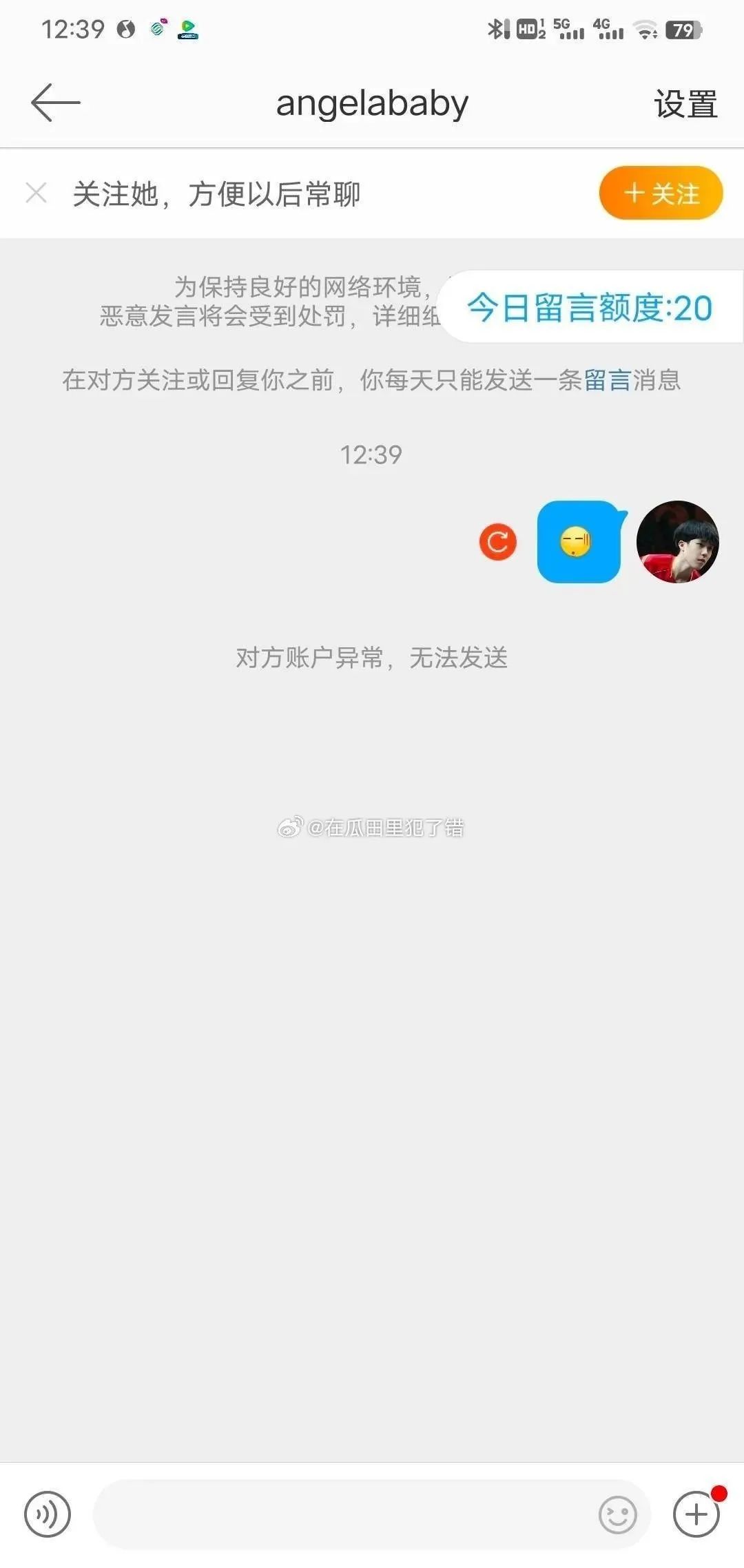 网友给Angelababy和张嘉倪的微博帐号发私信也发不出去了