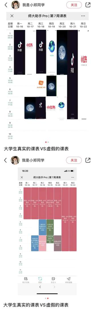 大学生真实的课表VS虚假的课表。