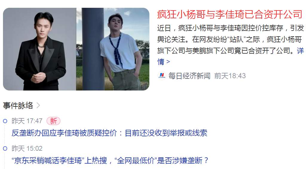 先是京东和李佳琦因为某品牌的出售价格开始互撕,接着又是大杨哥在直播间公然质疑李佳琦搞垄断。