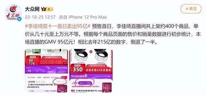 至于李佳琦,“双十一”预售开启首日,他就卖出去95亿元。